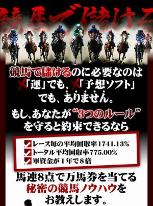 今までではありえない、ビッグな配当が取れてしまう競馬商材なのです。